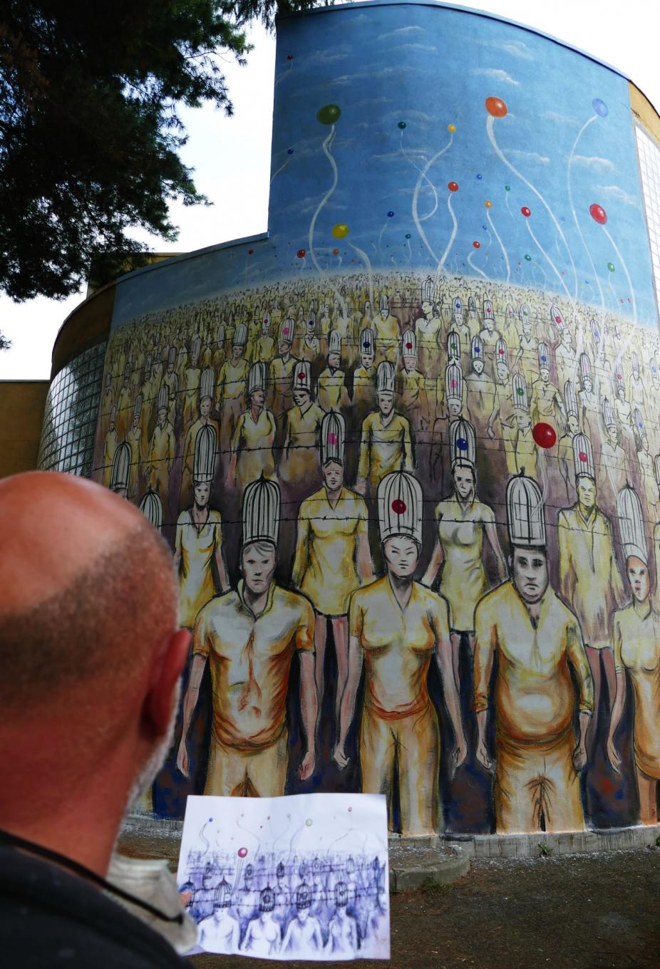 Quando nel mese di giugno venne condiviso il progetto pensai, "bel lavoro", "iniziativa coinvolgente e creativa, porterà sicuramente ad un buon risultato". Ma tra previsione e realtà in quest'ultima settimana si è creato qualcosa di meraviglioso ed emozionante. I bozzetti dei ragazzi coinvolti, carichi di speranze e di cose da dire, hanno incontrato una mano e una mente geniale, che ha saputo accogliergli, dargli fiducia e accompagnarli per mano dentro il viaggio delle emozioni per restituire a tutti un capolavoro.