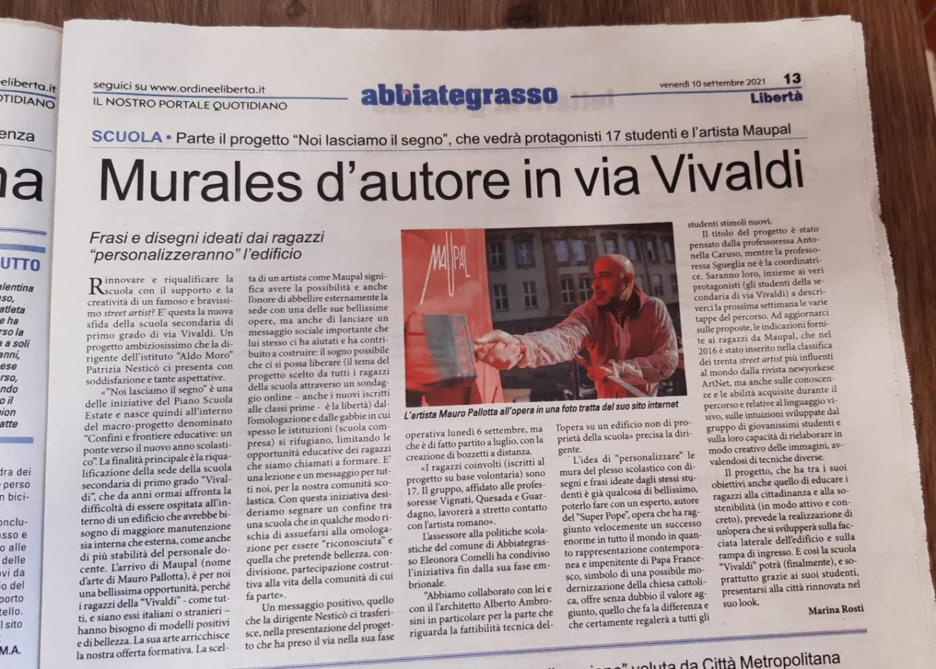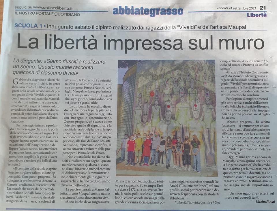 Ispirandosi ai disegni creati dai ragazzi nel mese di luglio, MAUPAL ha realizzato l'opera murale #LIBERTA' che è stata inaugurata sabato 18 settembre alla presenza dei ragazzi, dei genitori, dei docenti.