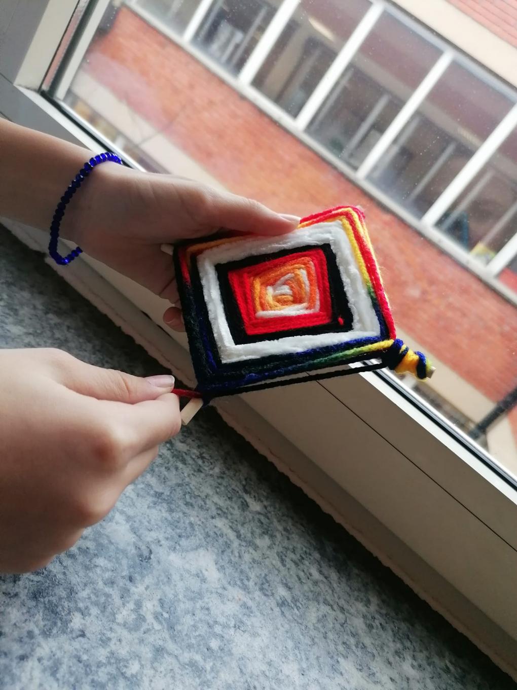 Gli Ojos de Dios sono stati realizzati con pazienza e passione dai ragazzi di Quinta. Verranno donati agli utenti del Portico della Solidarietà, perché possano portare il nostro augurio di salute, cura, prosperità.